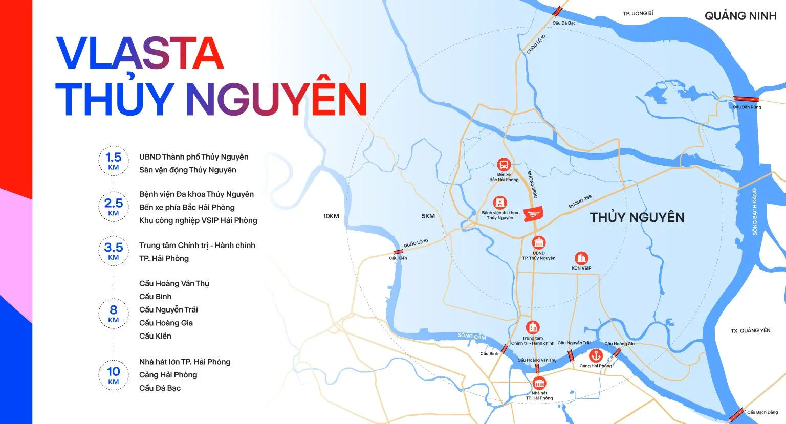 Vlasta Hải Phòng ( Khu đô thị Vlasta Thủy Nguyên ) là một vị trí vô cùng chiến lược khi kết nối thẳng ra quốc lộ 10, thông thương với các tỉnh Quảng Ninh, Thái Bình, Hải Dương, Hưng Yên, Hà Nội.